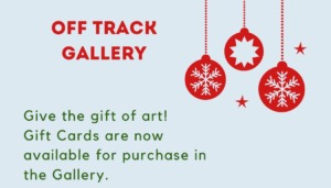 The Off Track Gallery showcases the work of more than 100 artists in a range of media, from digital art and watercolor to sculpture and jewelry. Come visit us.